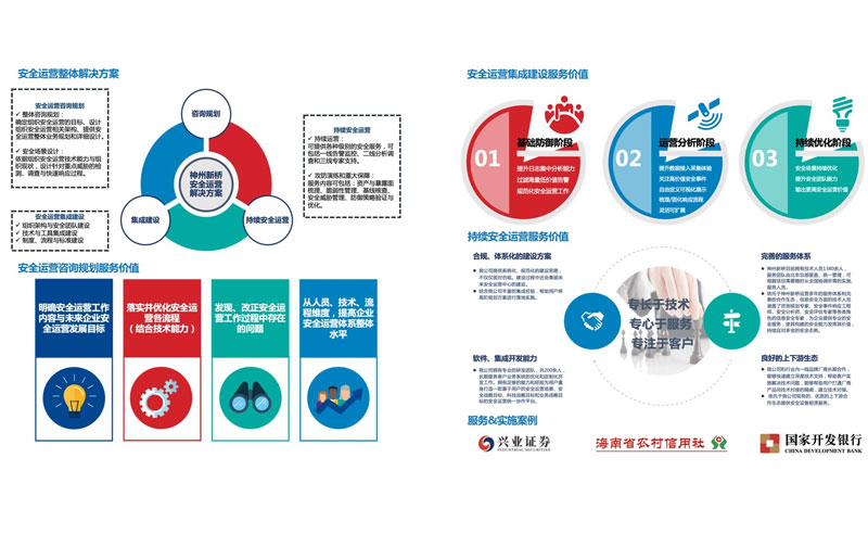 我们安全运营解决方案包括安全运营咨询规划、安全运营集成建设和持续安全运营三大类。